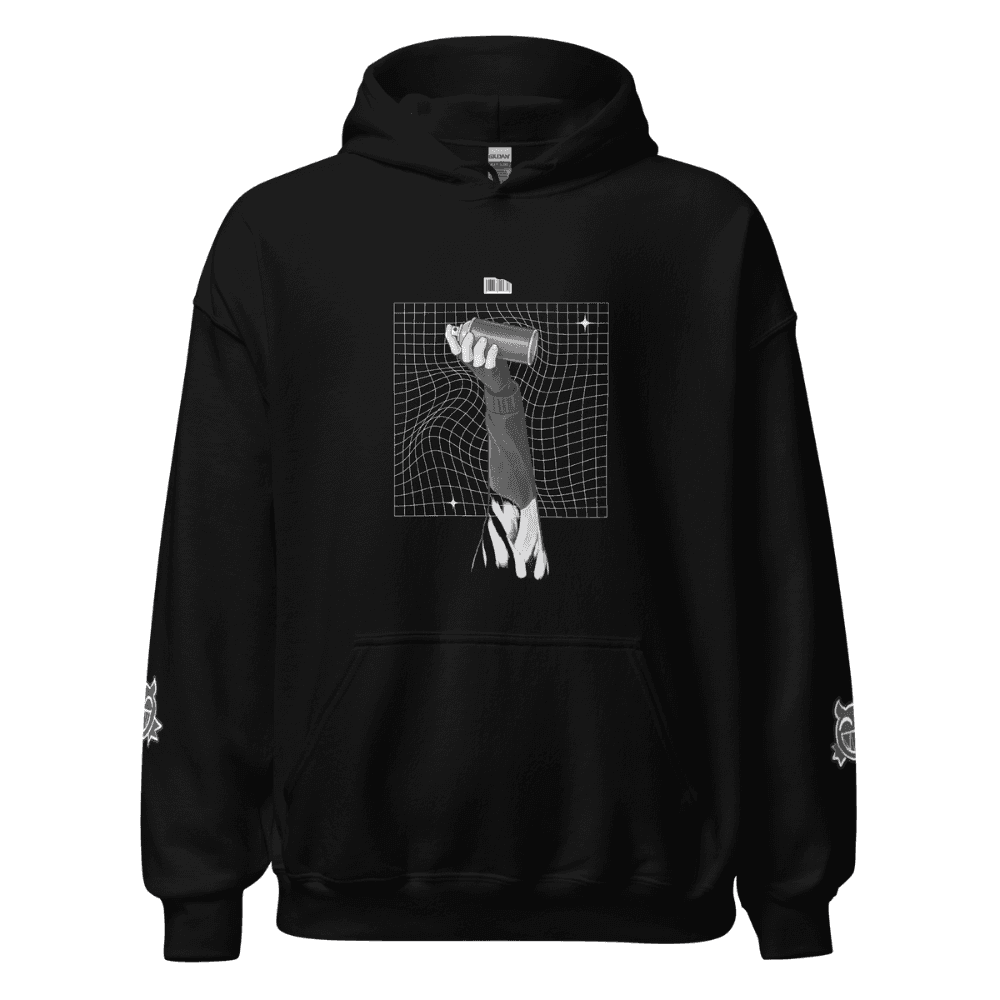 Com base branca versátil e detalhes minimalistas nas mangas, o moletom equilibra ousadia e simplicidade na medida certa. O destaque fica por conta da estampa central — uma mistura de arte de rua e personalidade — que transforma o look em uma verdadeira statement piece.